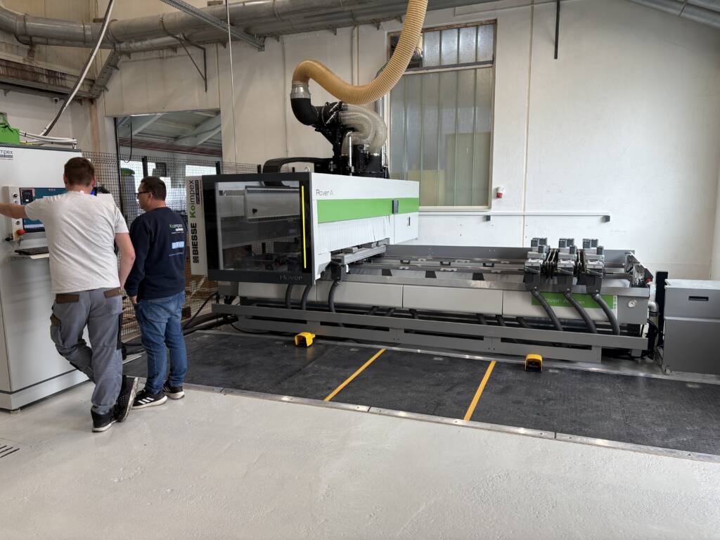 Prima oprema d.o.o. utrjuje svojo pozicijo med tehnološko naprednimi ponudniki CNC storitev z močno podprto 5-osno obdelavo. Z nedavno pridobitvijo novega 5-osnega CNC stroja Biesse Rover A Smart podjetje še dodatno krepi svojo zmogljivost natančne, hitre in prilagodljive obdelave zahtevnih lesenih elementov. Skupaj z že obstoječim naprednim obdelovalnim centrom Rover A Edge, ki omogoča robljenje in lepljenje ravnih ter oblikovanih robov z vrhunsko tehnologijo neposrednega nanašanja lepila, Prima oprema ponuja celostno in visokokakovostno rešitev na enem mestu.